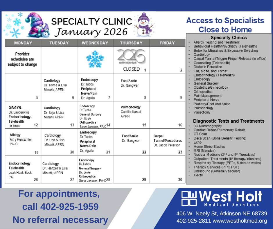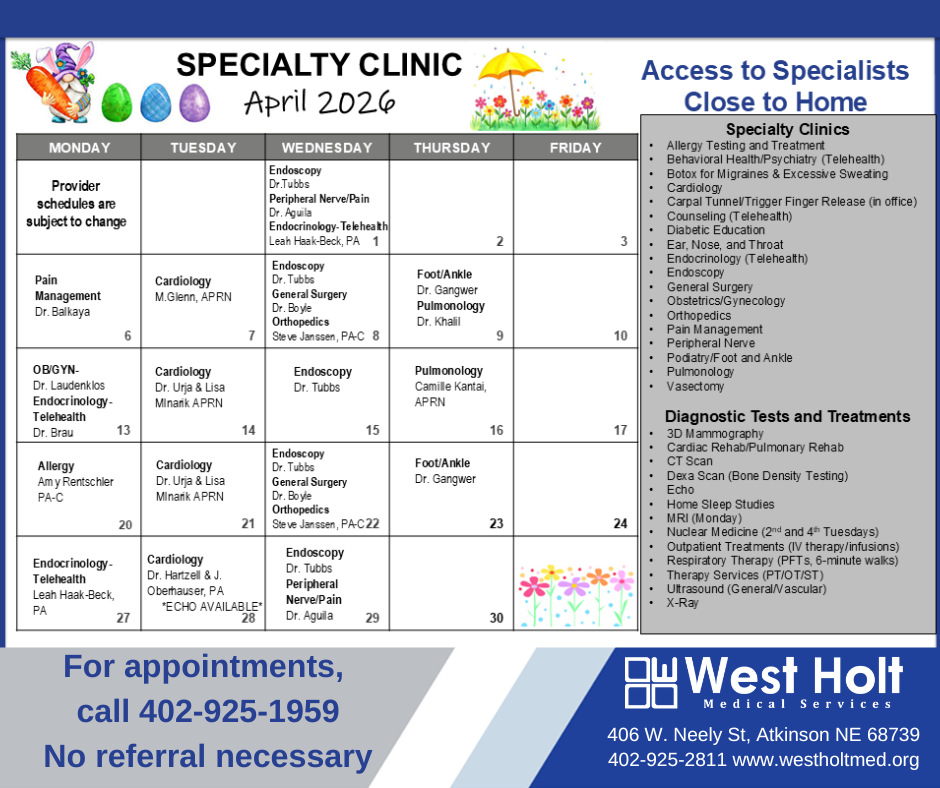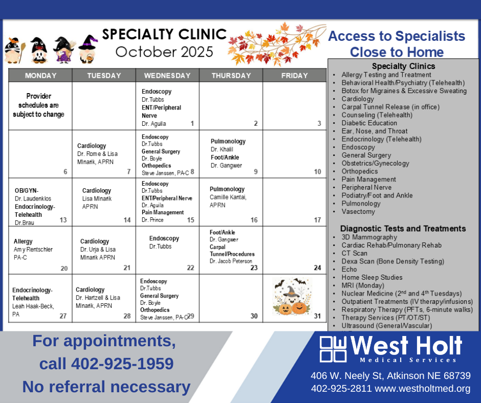 Specialty Clinic Calendar
